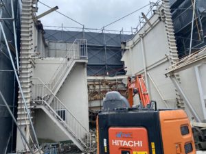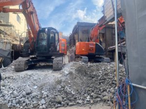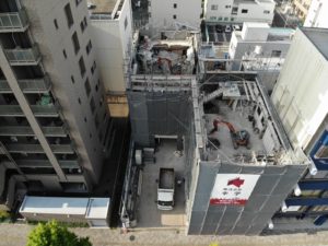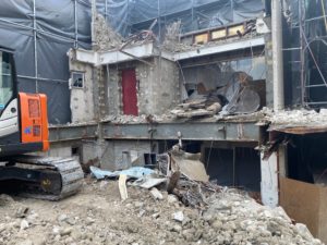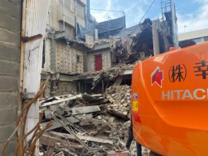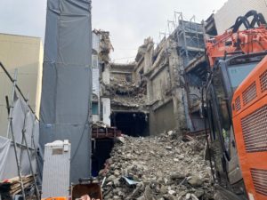 先日、アップしましたビルの解体工事の様子を引き続きご紹介します。